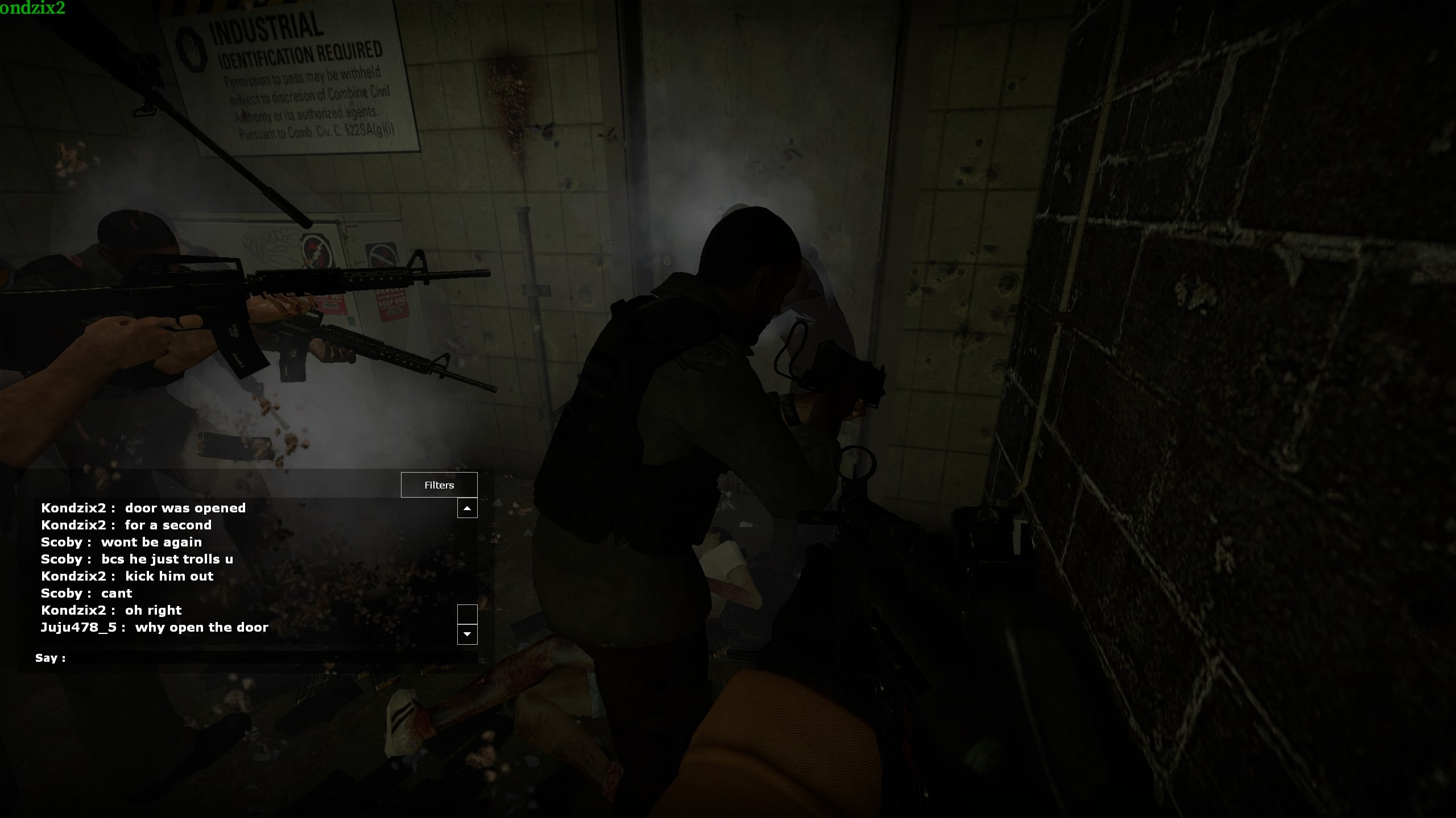 Myself and other players of your server on "No More Room In Hell" have encountered a person which tries to troll in all games anddisrupts the progress. He either picks up objects that are required to advance and hoards them, either keeps props to himself so we can't grab them, either spawns ammo to crash the server, either body blocks doors to prevent us from opening them.